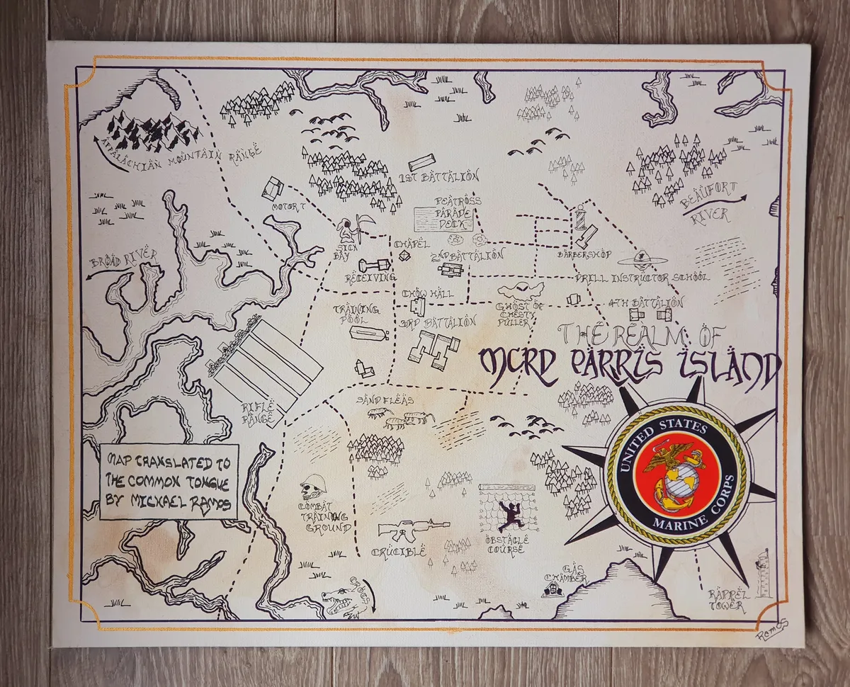 Lord of the Rings/Hobbit-style map of USMC Base Parris Island, South Carolina