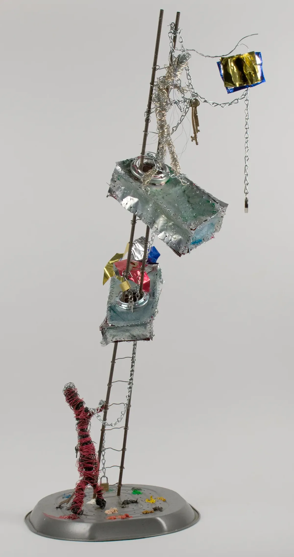 sculpturemixed mediawire artfound objectsabstract figurescontemporary artsymbolicContemporary / ModernAbstractStorytelling / NarrativeExpressionism / EmotionalAbstract / ConceptualSpiritual / SymbolicConflict / Sacrifice