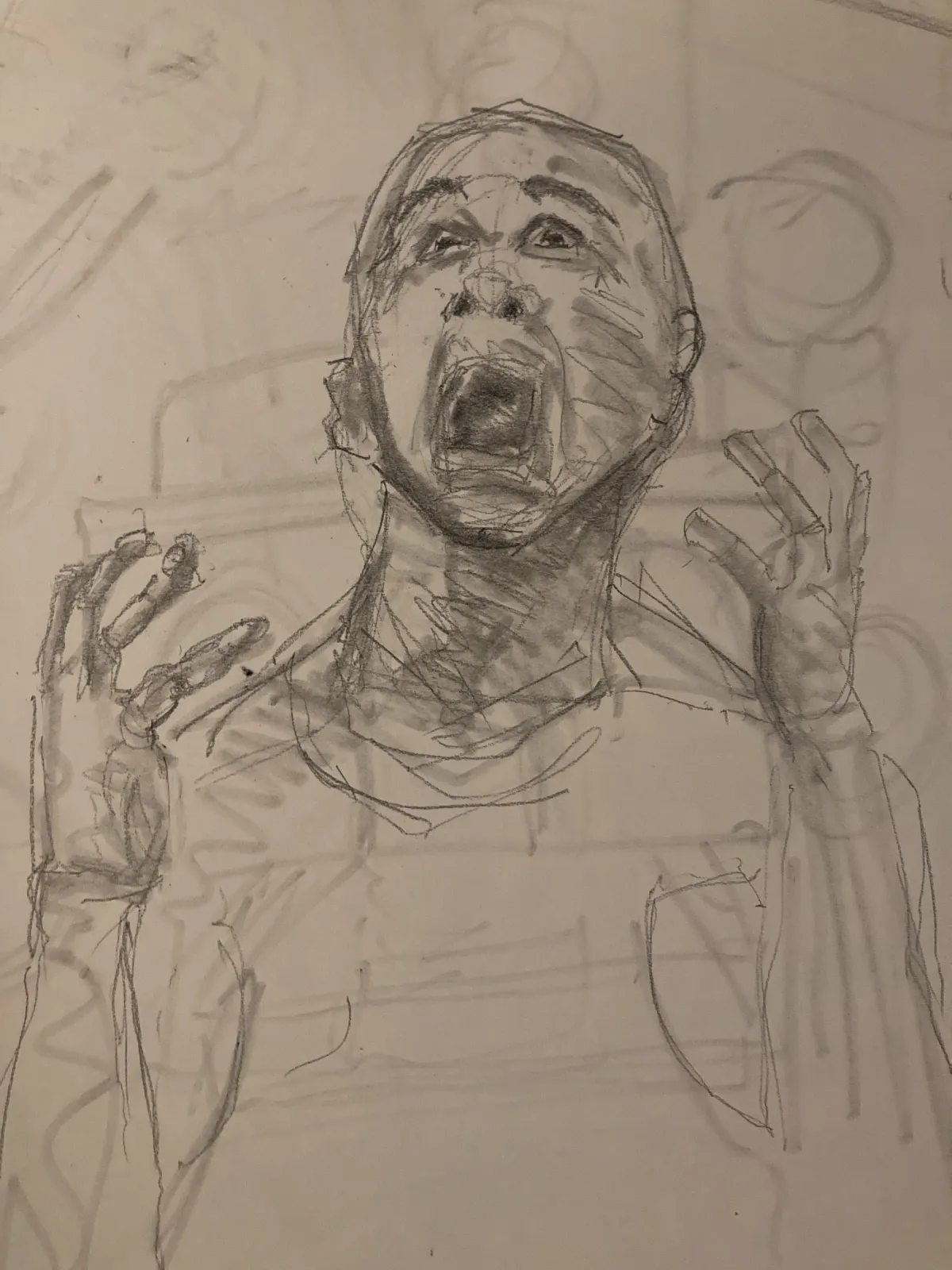 sketchpencil drawingscreaminganguishemotionalportraitmonochromeRealismExpressionism / EmotionalDark / DramaticStorytelling / NarrativePortrait / PeopleConflict / SacrificeSpiritual / Symbolic