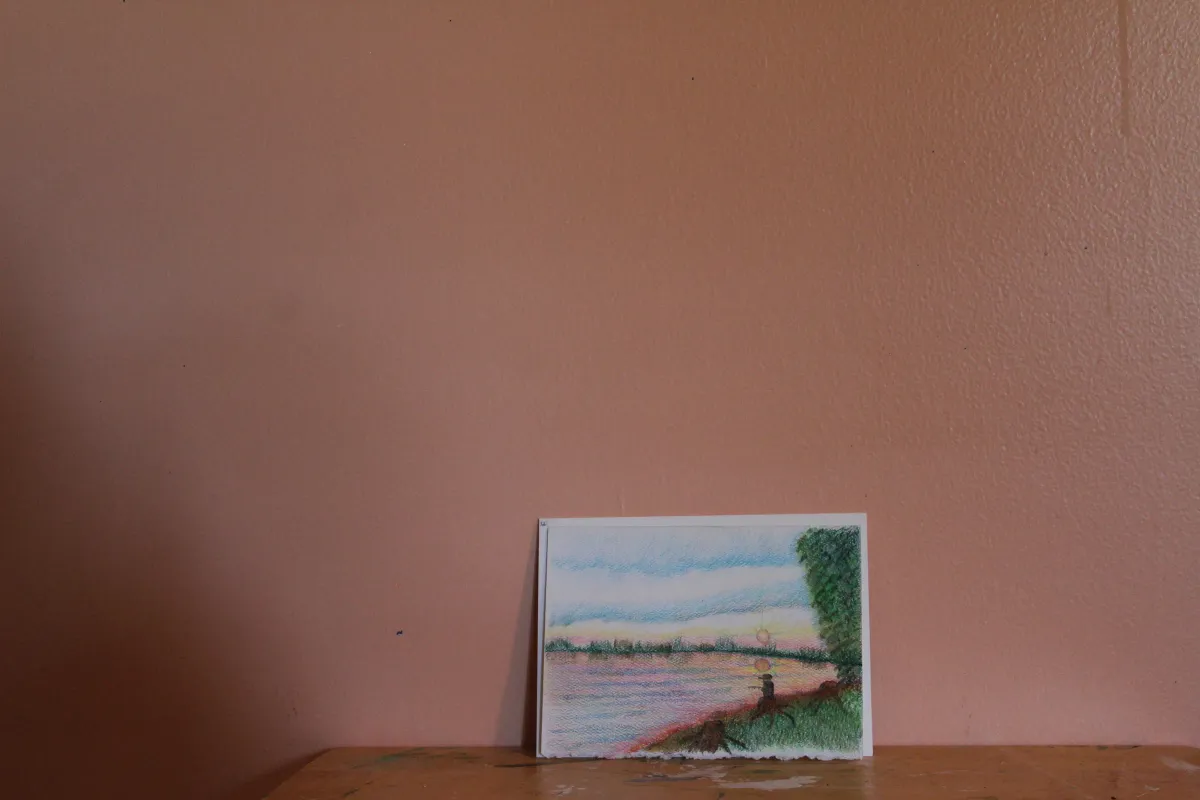 Landscape drawingSunsetWaterFolk artColored pencilNaive artWall artLight / SereneContemporary / ModernLandscape / NatureSeascape / Water
