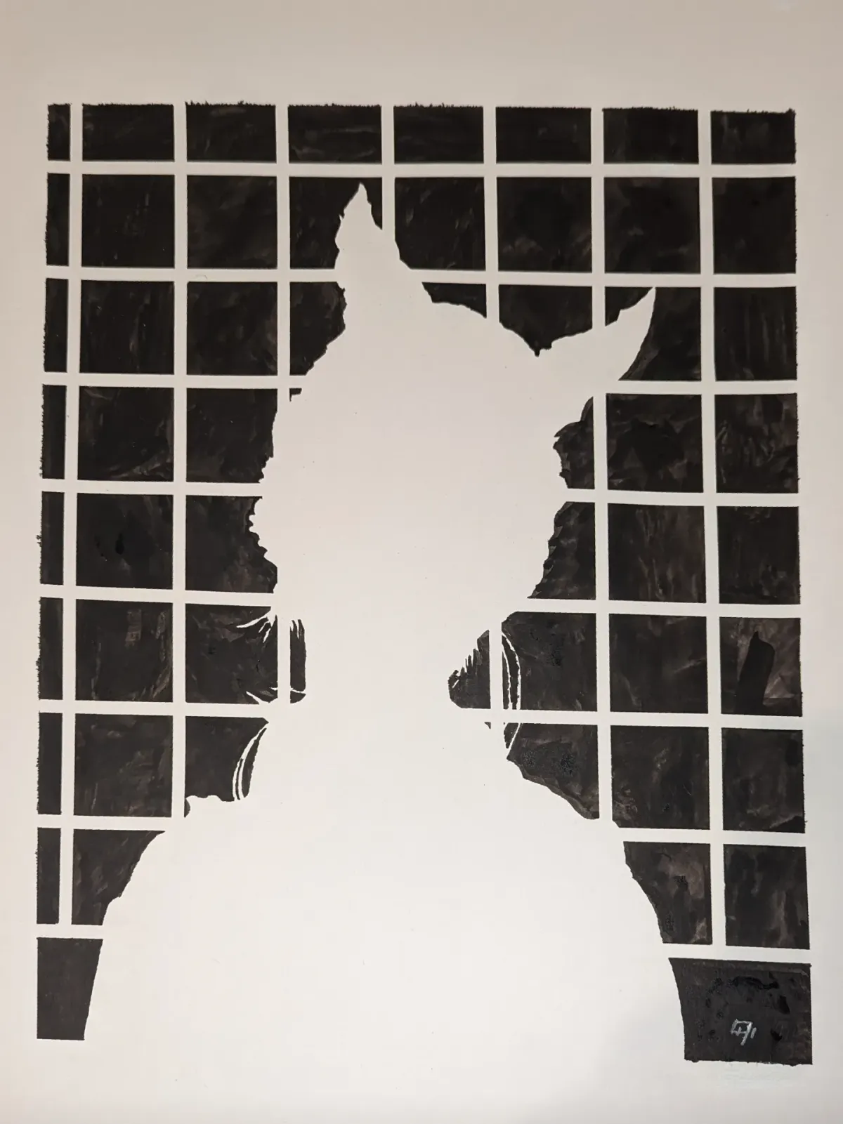 silhouetteblack and whitegrid patterngraphic artminimalistcontrasthorned figureAbstractMinimalistBold / GraphicContemporary / ModernDark / DramaticAbstract / ConceptualSurreal / ImaginativePortrait / People