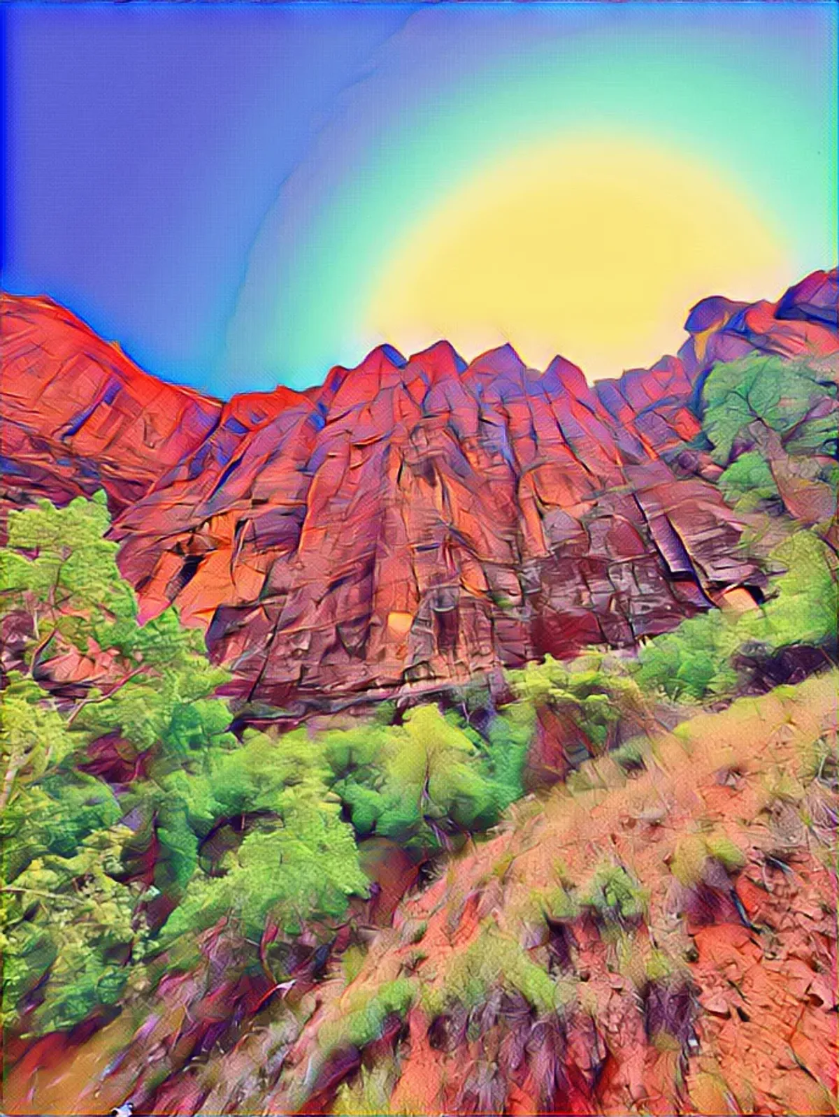 landscapemountainsstylizedvibrantred rockssunnaturecolorfulExpressionism / EmotionalContemporary / ModernBold / GraphicInspirational / UpliftingLandscape / NatureSurreal / Imaginative