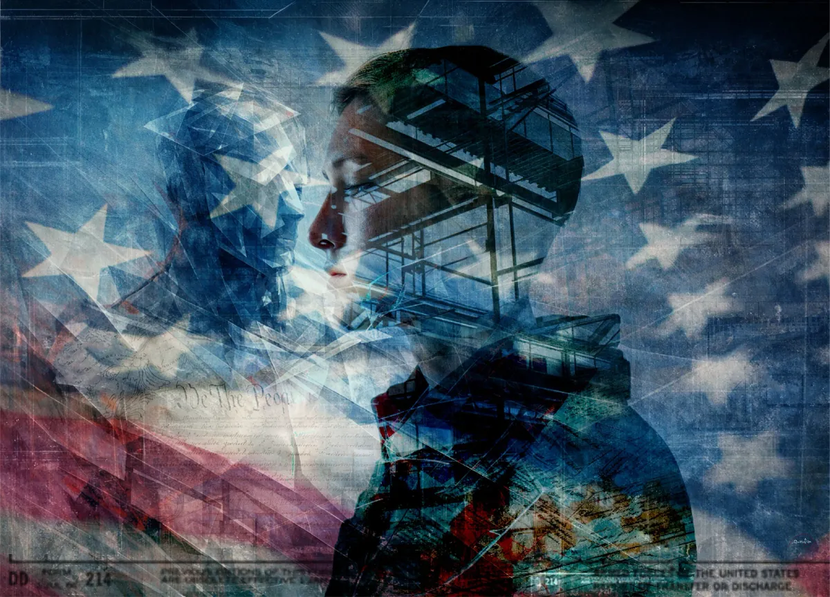 PatrioticVeteranAmerican flagCollageFragmentedPortraitSymbolicContemporary / ModernBold / GraphicDark / DramaticStorytelling / NarrativeStatement / ActivismPatriotic / Military / FreedomVeteran Story / ServicePortrait / PeopleSpiritual / SymbolicHistorical / CulturalConflict / Sacrifice
