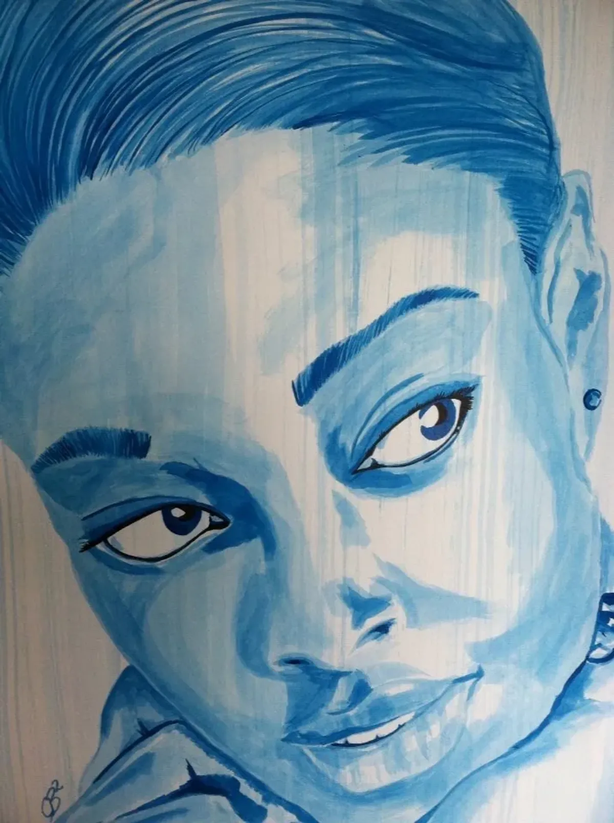 PortraitMonochromaticBlueStylizedExpressiveWomanContemporaryContemporary / ModernBold / GraphicExpressionism / EmotionalPortrait / People