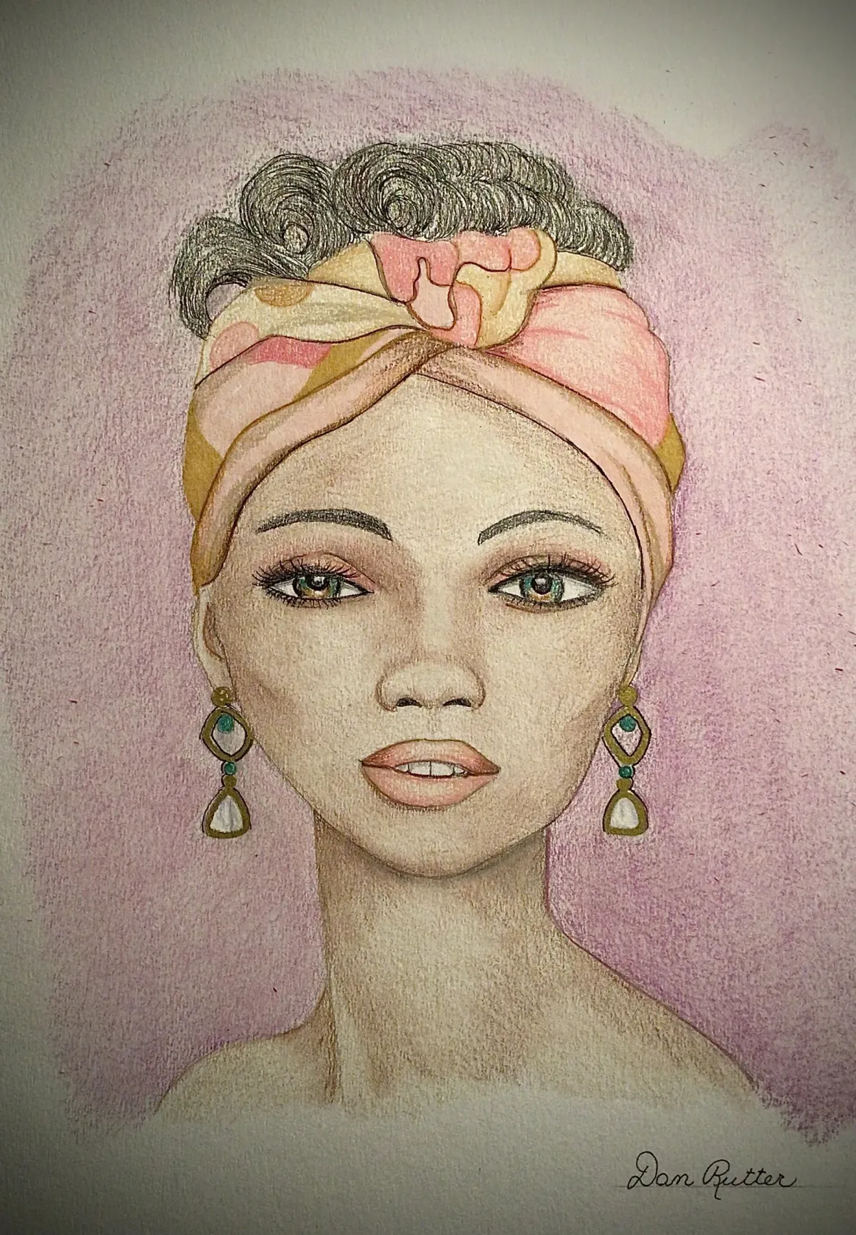 PortraitWomanHeadwrapEarringsWatercolorFeminineBeautyRealismContemporary / ModernLight / SereneStorytelling / NarrativePortrait / PeopleHistorical / Cultural