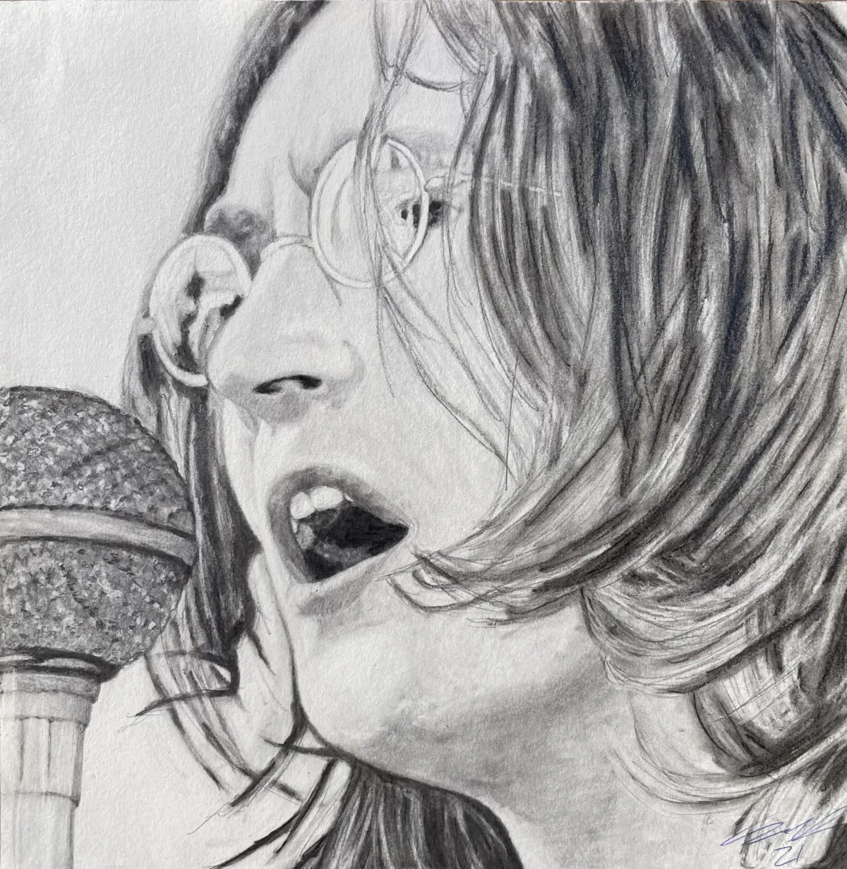 pencil drawingmonochromeportraitsingermicrophonemusicrealisticRealismContemporary / ModernStorytelling / NarrativeDark / DramaticPortrait / PeopleHistorical / Cultural