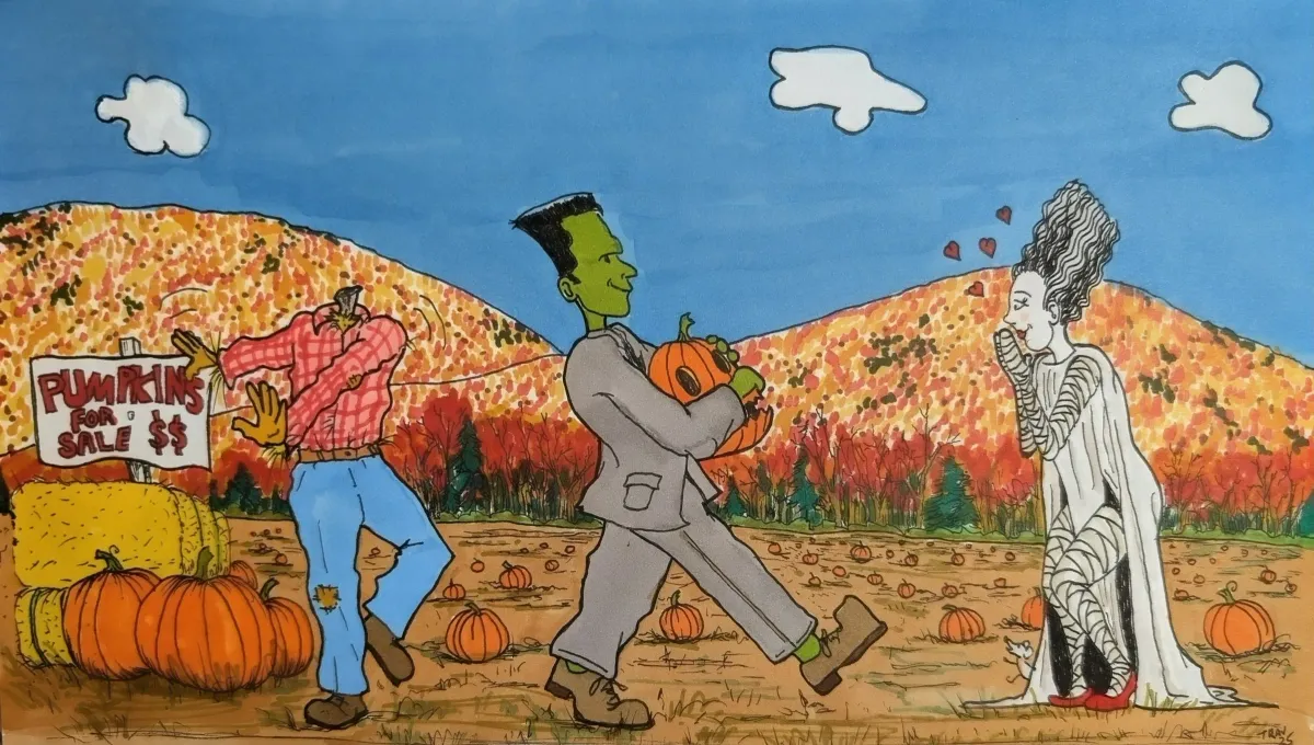 FrankensteinBride of FrankensteinPumpkin patchHalloweenAutumnScarecrowCartoonStorytelling / NarrativeBold / GraphicContemporary / ModernHumor / WhimsyHistorical / CulturalLandscape / Nature