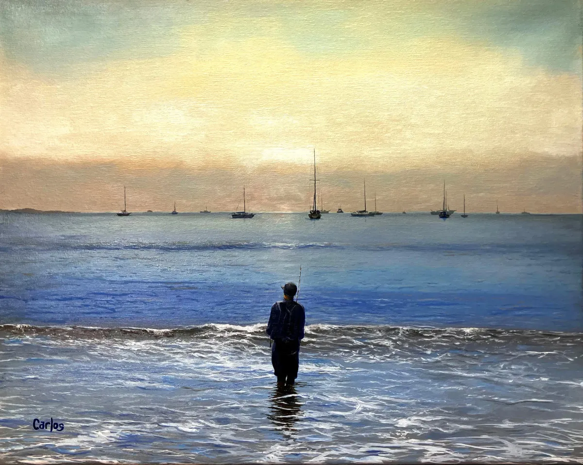 fishingsunsetoceanseascapesolitarytranquilitysailboatsRealismLight / SereneStorytelling / NarrativeTherapeutic / ReflectiveLandscape / NatureSeascape / WaterPortrait / PeopleSpiritual / SymbolicHope / Healing / Resilience