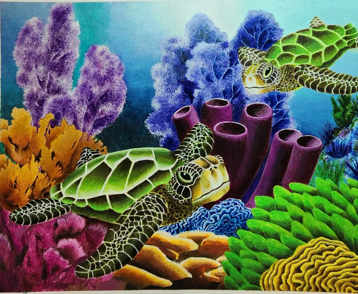Sea turtlesCoral reefUnderwaterMarine lifeOceanVibrantTropicalRealismBold / GraphicLight / SereneLandscape / NatureSeascape / WaterAnimals / Wildlife