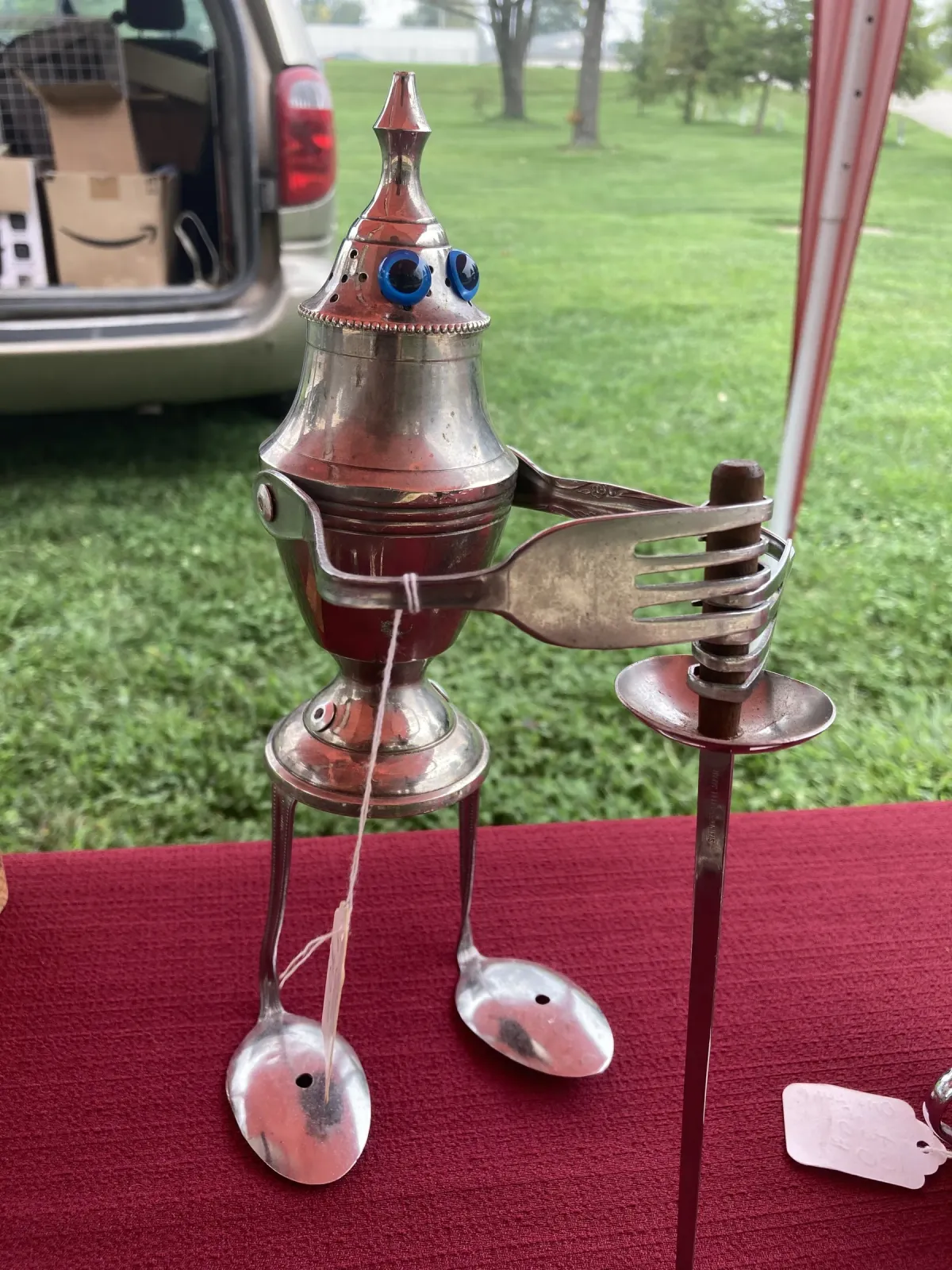 upcycled artsilverware sculpturefound object artmetal artwhimsicalcrafthumanoid figureContemporary / ModernInspirational / UpliftingStill Life / ObjectsSurreal / ImaginativeHumor / Whimsy