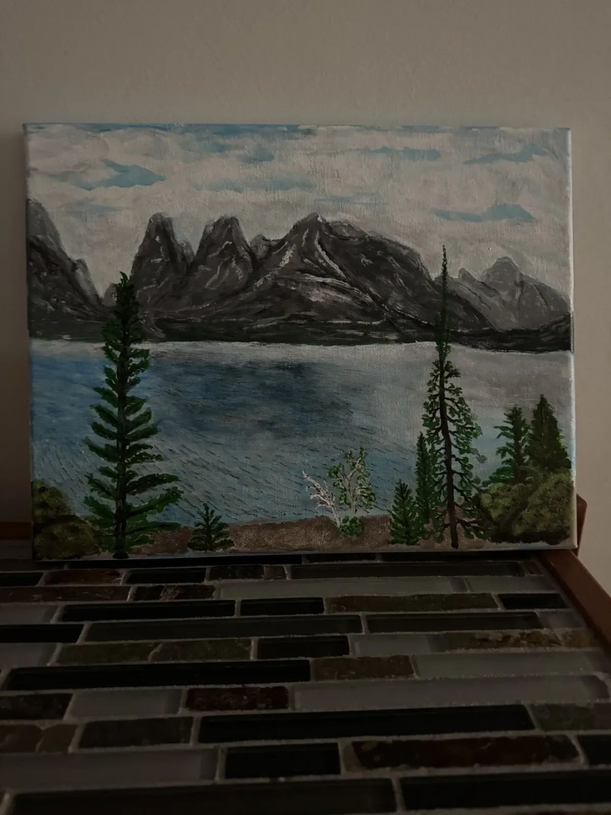 mountainlakelandscapenaturetreespaintingsceneryRealismLight / SereneLandscape / NatureSeascape / Water