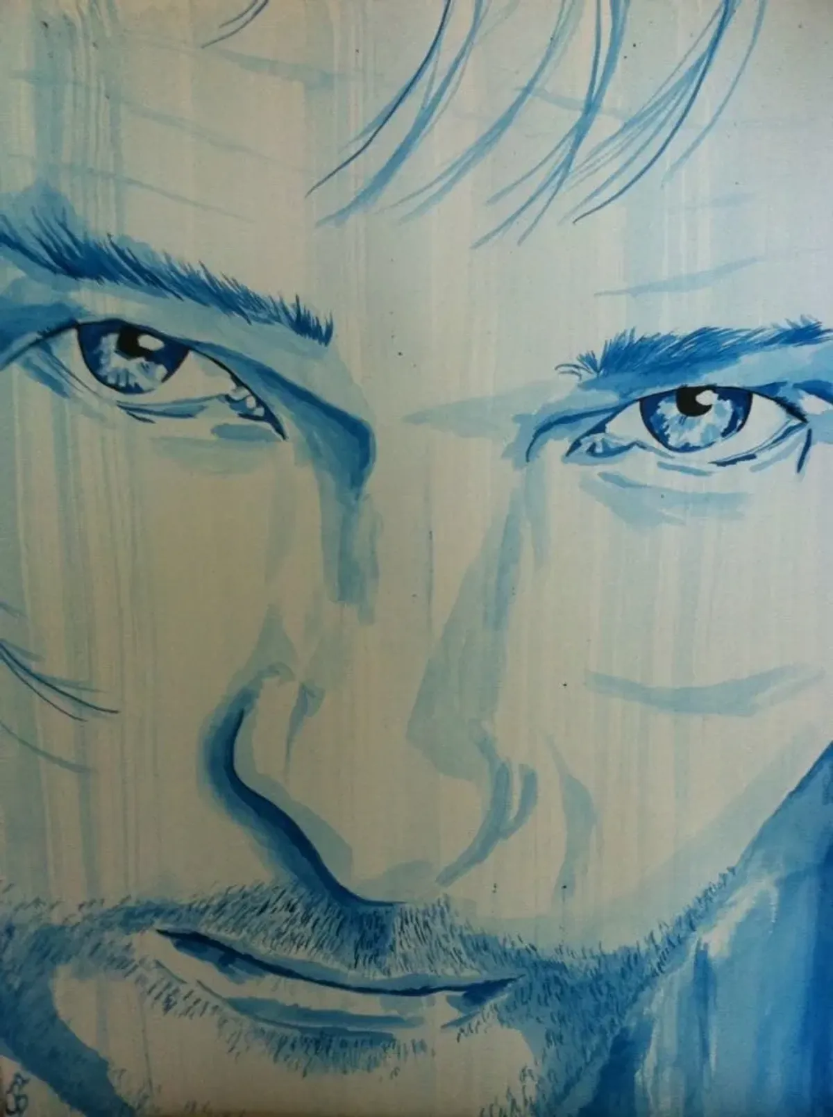 portraitmanbluemonochromeeyeswatercolorexpressiveRealismExpressionism / EmotionalBold / GraphicContemporary / ModernPortrait / People