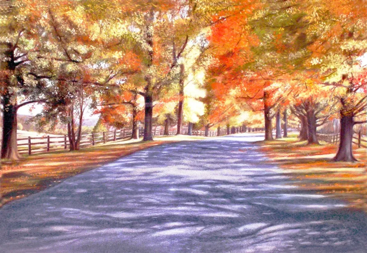 AutumnFall colorsTreesRoadLandscapeSunlightShadowsRealismLight / SereneInspirational / UpliftingLandscape / Nature