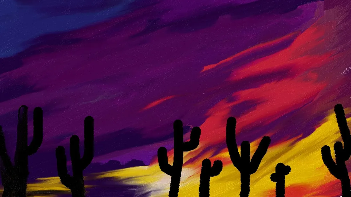 DesertSunsetCactiVibrantLandscapeExpressiveSilhouetteExpressionism / EmotionalBold / GraphicLandscape / Nature