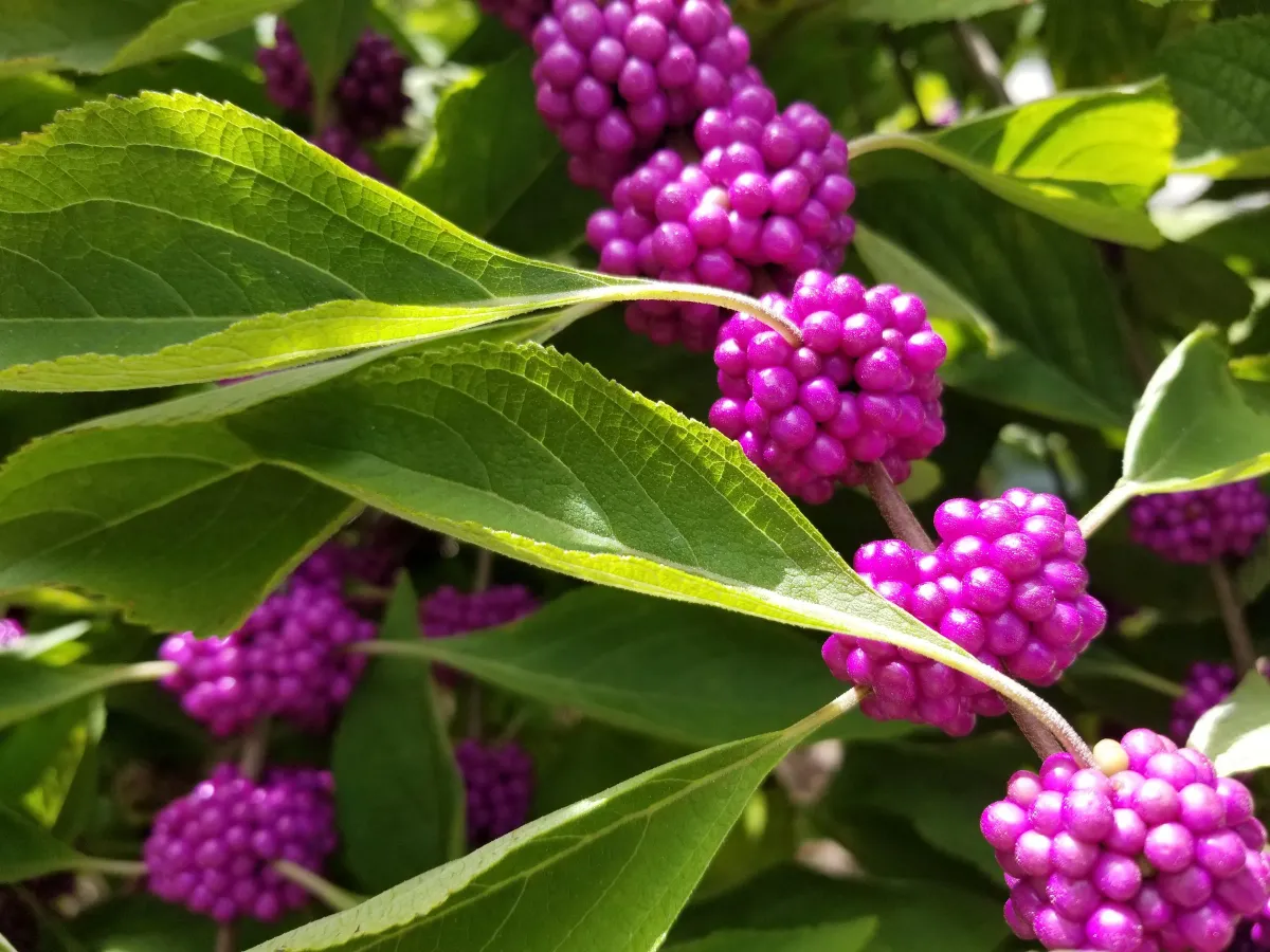 purple berriesgreen leavesnatureplant lifevibrant colorsfoliagebotanyRealismLight / SereneInspirational / UpliftingLandscape / Nature