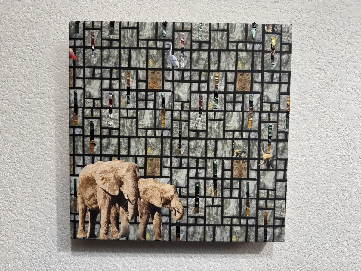 mixed mediaelephantsgrid patternabstracttexturedcontemporary artanimalsContemporary / ModernAbstractStorytelling / NarrativeAnimals / WildlifeAbstract / ConceptualSurreal / Imaginative