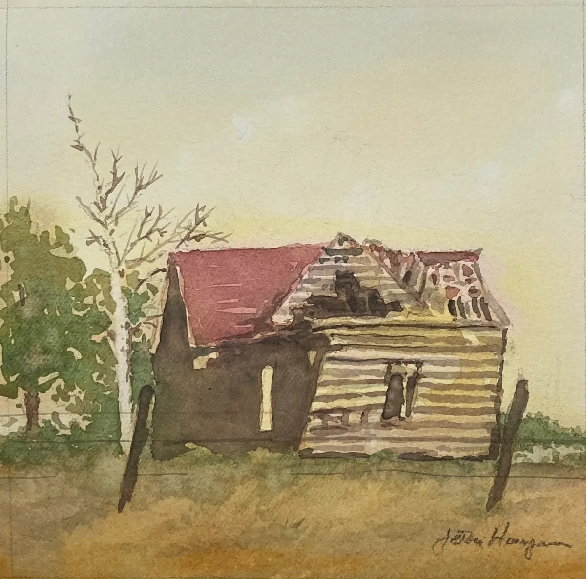 WatercolorDilapidated houseRusticLandscapeOld buildingRuralFarmhouseRealismStorytelling / NarrativeTherapeutic / ReflectiveLandscape / NatureHistorical / Cultural