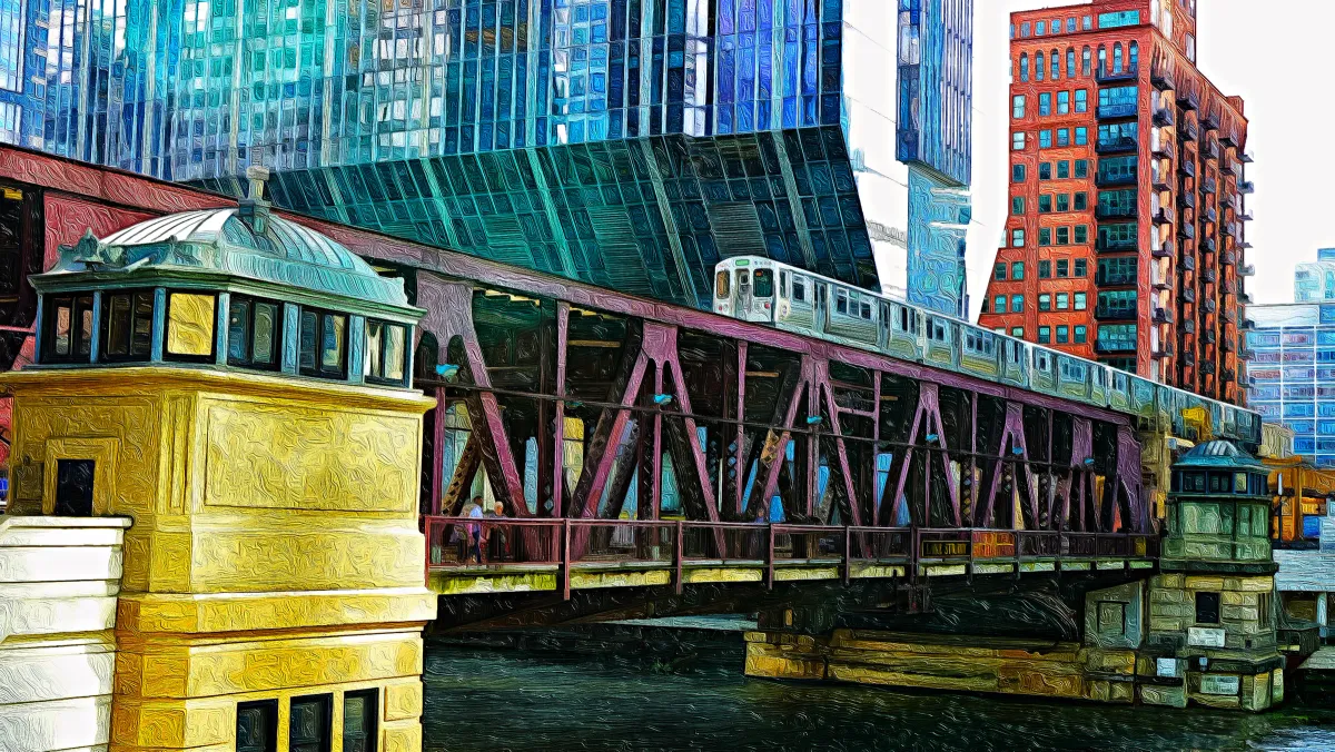 cityscapebridgetrainarchitectureurbanoil paintingimpressionisticImpressionismContemporary / ModernBold / GraphicCity / ArchitectureHistorical / Cultural