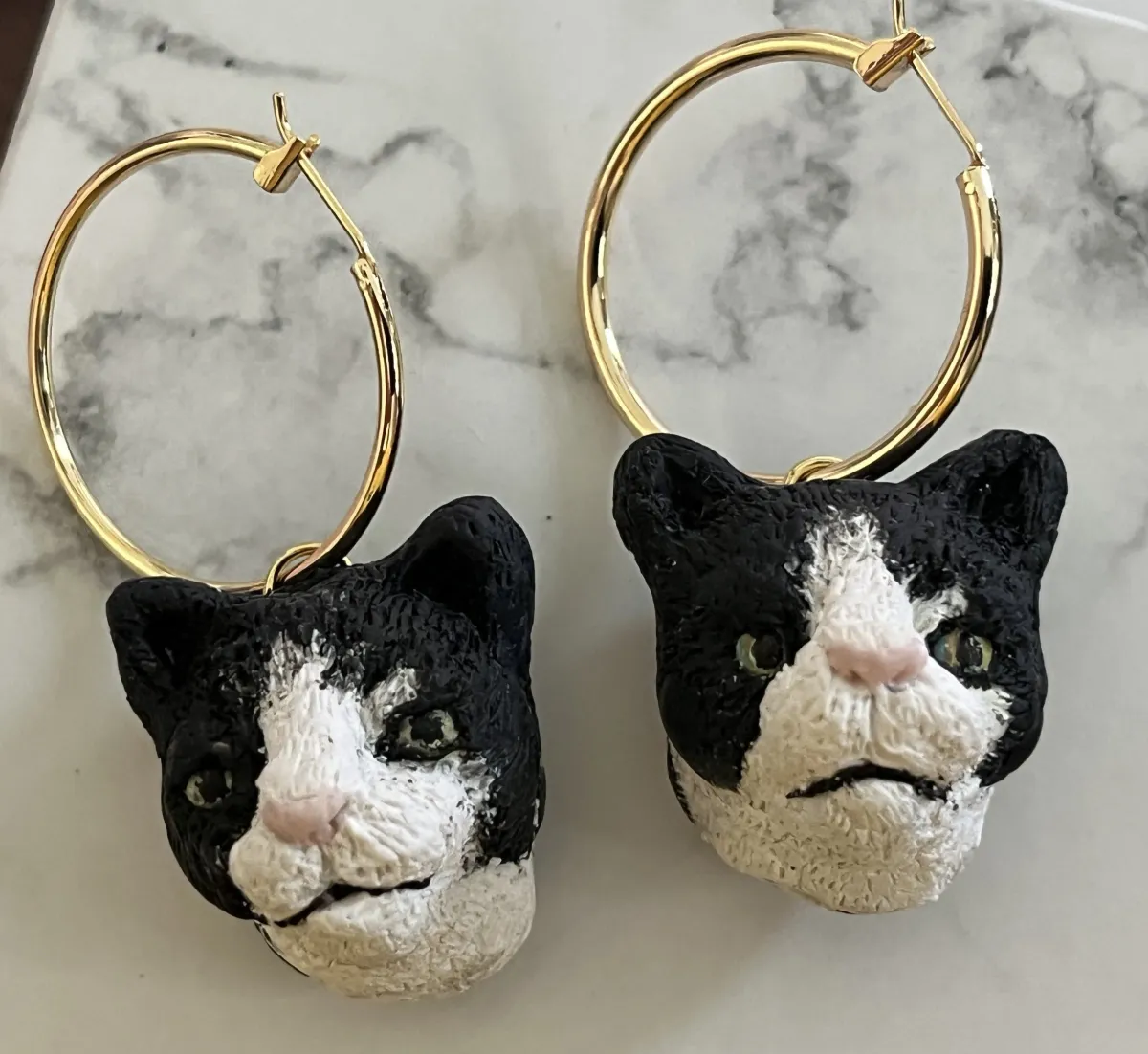 earringscatjewelrytuxedo cathoop earringshandmadeanimalRealismContemporary / ModernAnimals / Wildlife