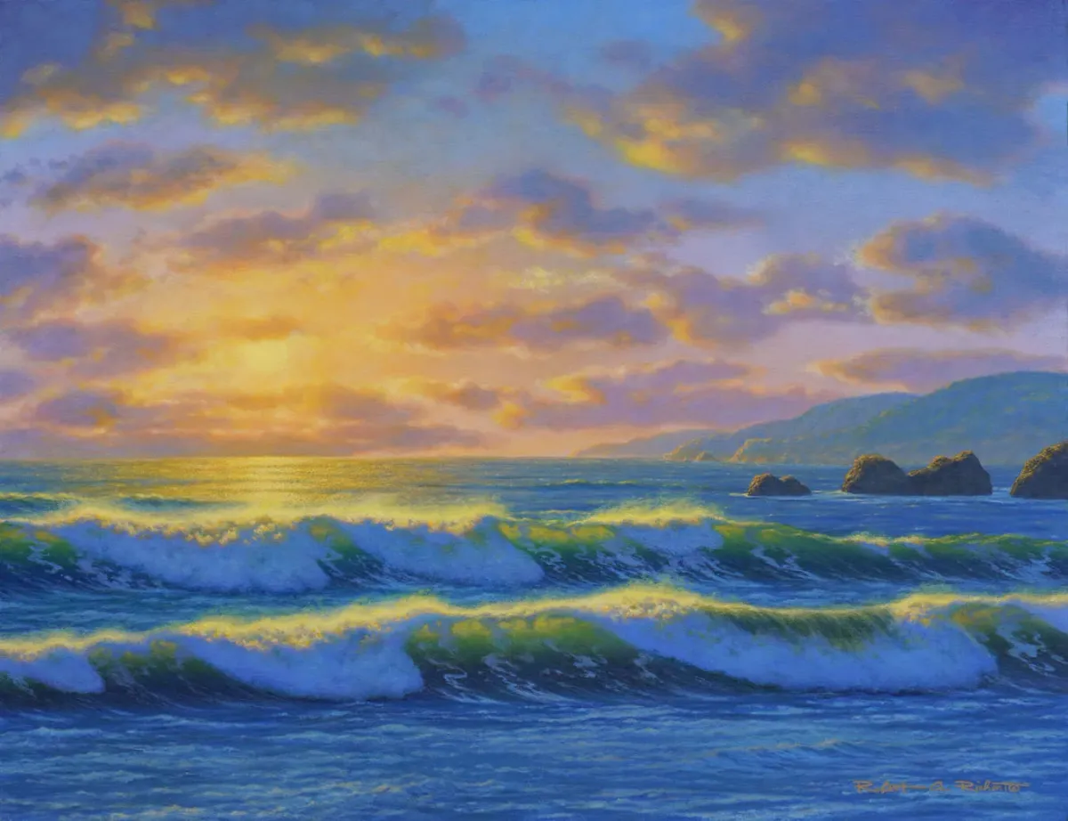 seascapesunsetoceanwavescoastalgolden hourcloudsRealismLight / SereneInspirational / UpliftingLandscape / NatureSeascape / Water