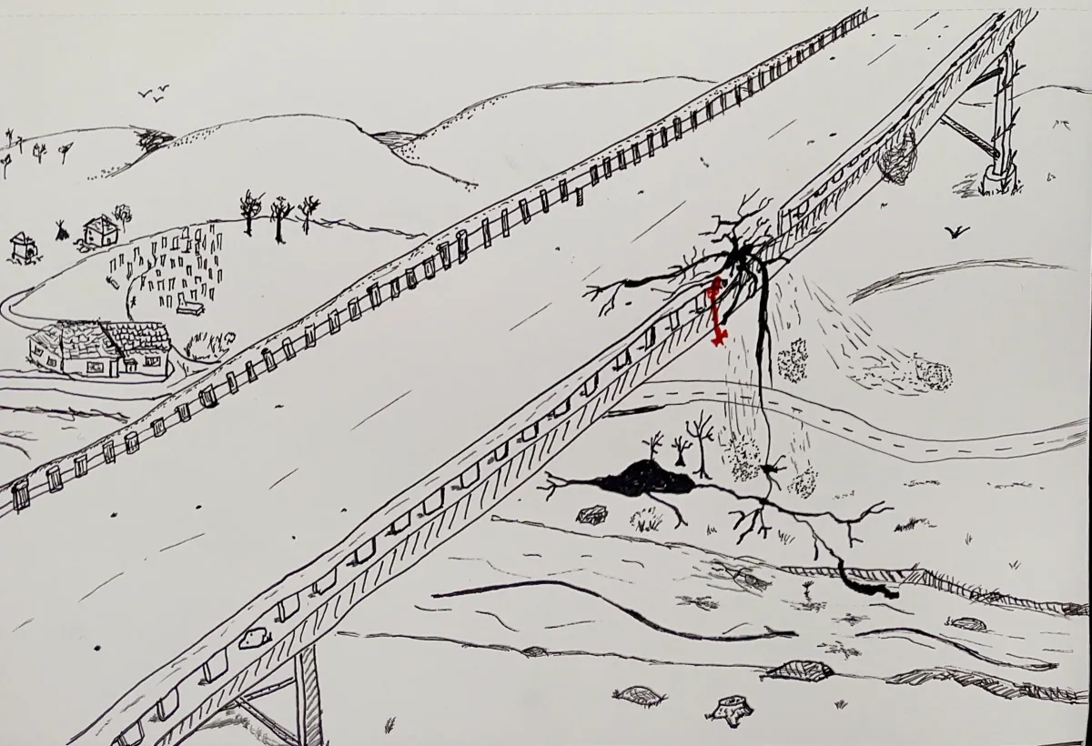 Broken BridgeInk DrawingCemeteryHighwayDestructionMonochromaticArchitectural DecayRealismBold / GraphicDark / DramaticStorytelling / NarrativeExpressionism / EmotionalLandscape / NatureCity / ArchitectureSpiritual / SymbolicConflict / Sacrifice