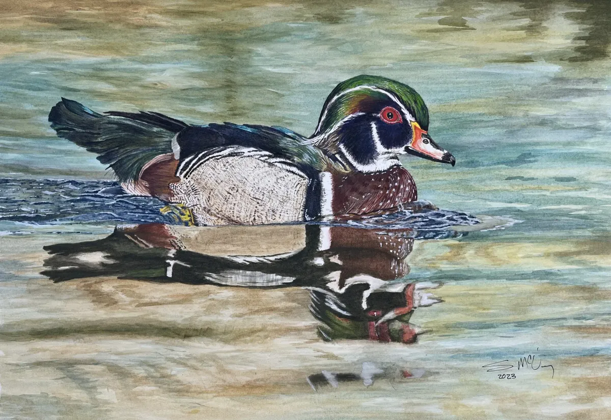 wood duckwaterfowlwatercolorwildlifebirdnatureswimmingRealismLight / SereneAnimals / WildlifeLandscape / Nature