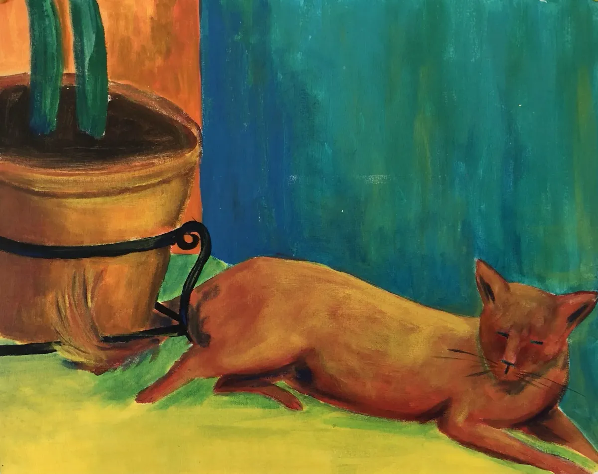 catpotted plantcolorfulstill lifeanimalorangetealExpressionism / EmotionalContemporary / ModernBold / GraphicAnimals / WildlifeStill Life / Objects