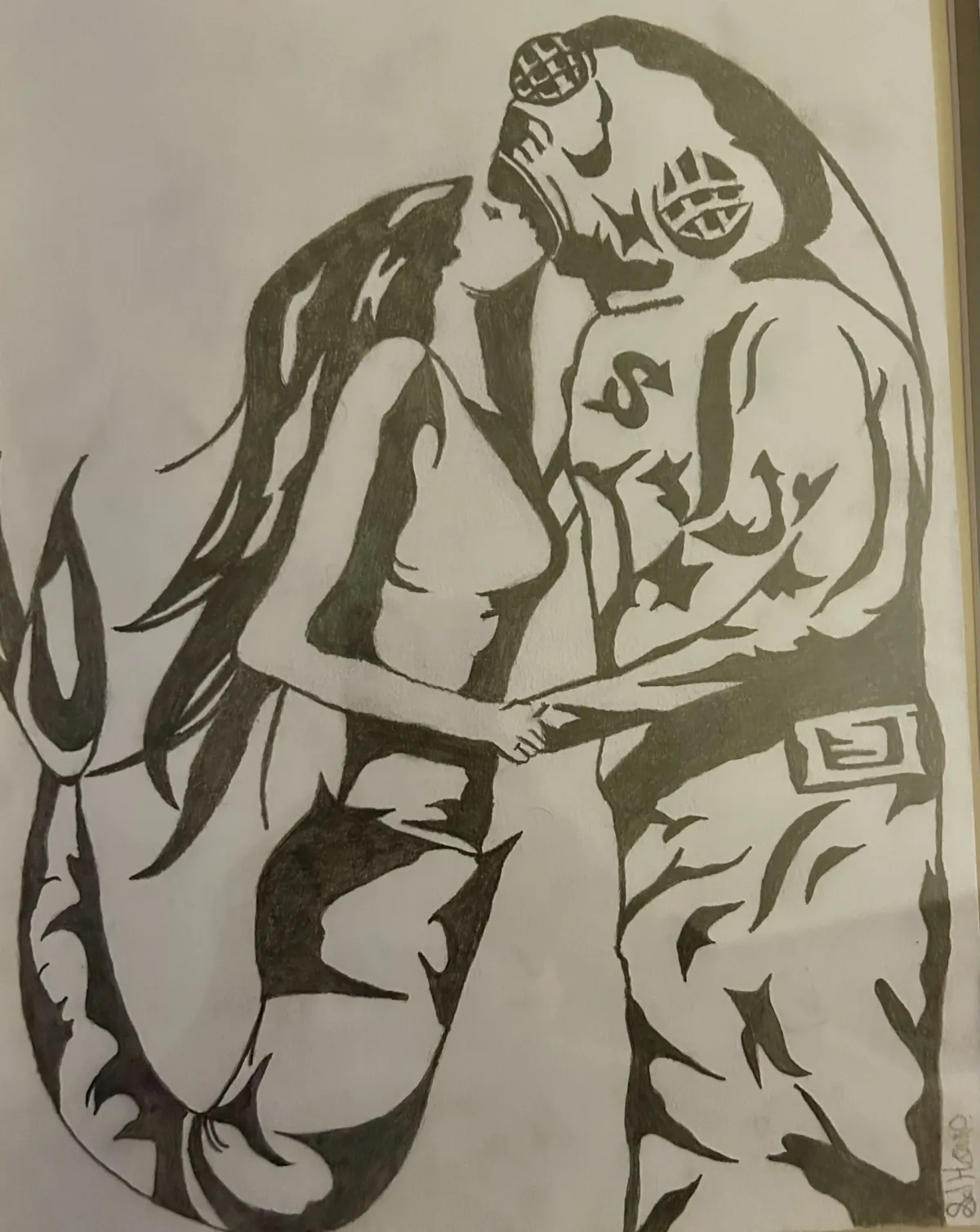 MermaidDeep-sea diverEmbracePencil drawingBlack and white artFantasyMythicalBold / GraphicStorytelling / NarrativePortrait / PeopleSurreal / ImaginativeSpiritual / SymbolicSeascape / Water
